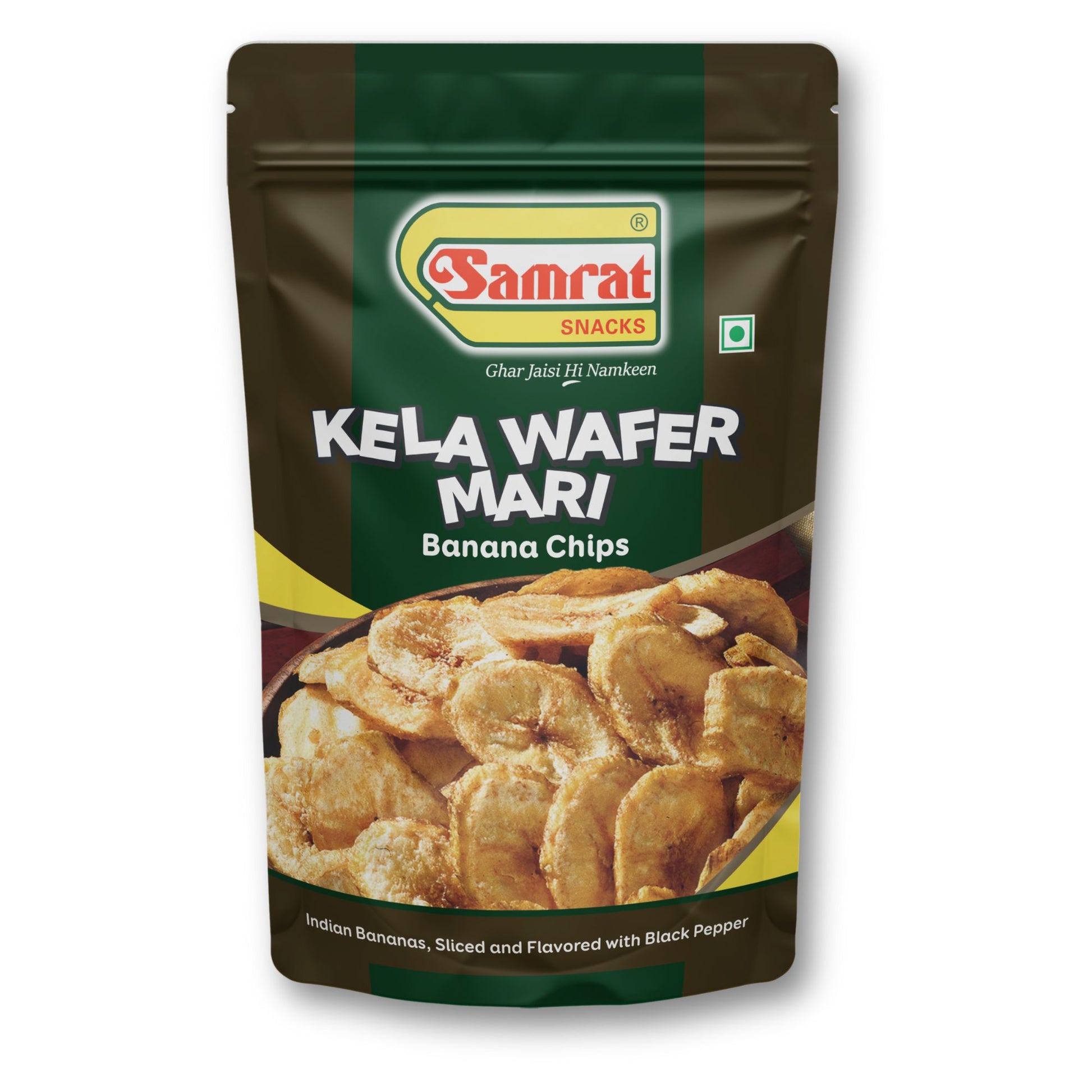 Enjoy the perfect crunch with Samrat Kela Wafer Mari Banana Chips—crispy, thinly sliced bananas fried to golden perfection and seasoned with a bold touch of black pepper. These chips strike the ideal balance between the natural sweetness of bananas and the zing of traditional Indian spices, making them an irresistible namkeen for all snack lovers.